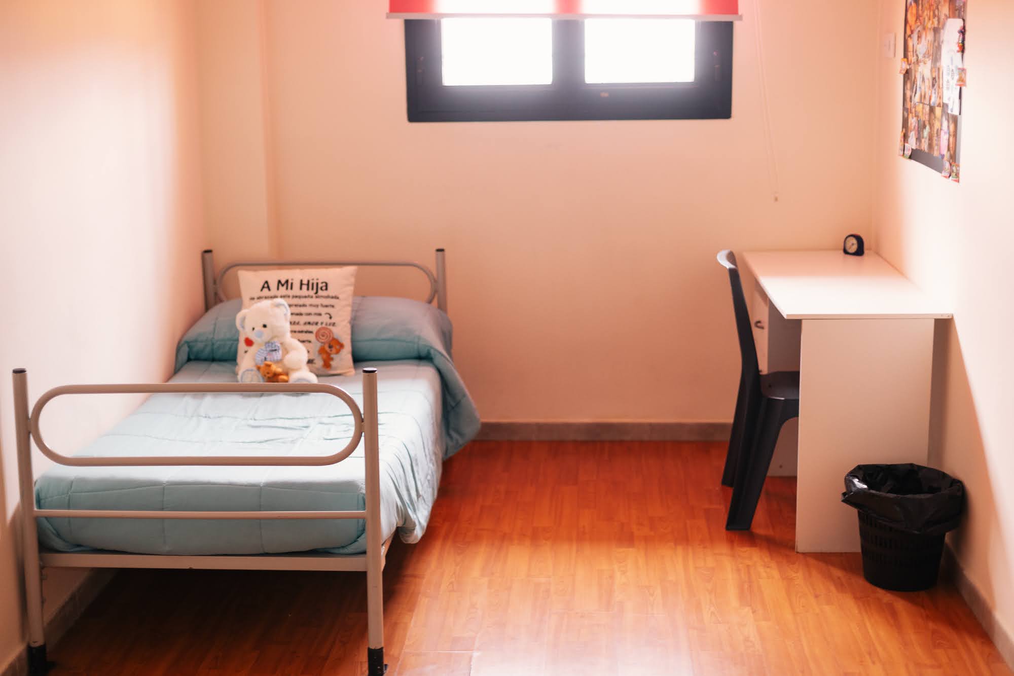 Maria's room had sunset-coloured walls. A pillow on her bed said "A Mi Hija" - tomy daughter. Family photos covered one wall. A cordless phone sat on her desk - she could call her grandmother anytime. Her case worker talked to her about architecture school, about what she wanted to build when she got out in three months.